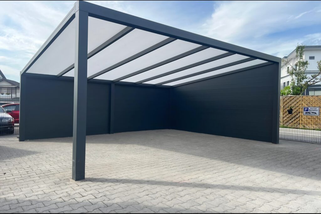 Für noch mehr Schutz und Komfort bieten wir Ihnen Seitenwände aus Aluminium oder Polycarbonat – perfekt als Wind- oder Sichtschutz.